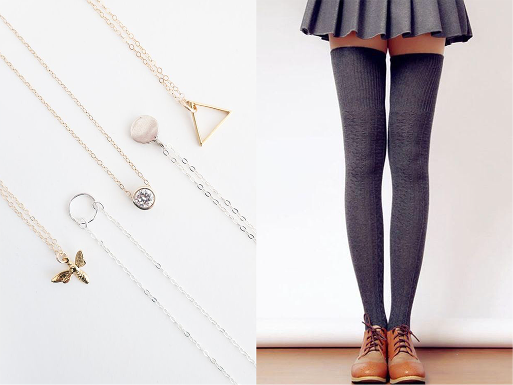 Nếu đồng phục trường bạn là váy đi kèm với sơ-mi thì “đầu tư” ngay và luôn cho vòng cổ bản to (statement necklace) và vớ dài. Để bộ đồng phục “lấp lánh” nhưng vẫn không khiến thầy cô giám thị “tuýt còi”, hãy chọn vớ có cùng màu với váy. Ngoài ra, thay vì đeo những vòng cổ đính đá, chất liệu metallic (kim loại) sẽ khiến chúng mình nhu mì và cá tính hơn.