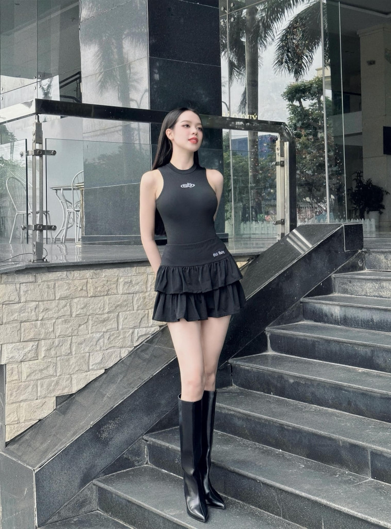 Trang phục đời thường của người đẹp cũng có rất nhiều gam đen, mang đậm nét hiện đại và năng động của một cô nàng Gen Z chính hiệu.
