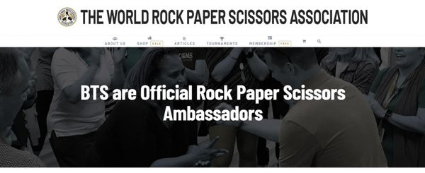 Mới đây, hiệp hội trò chơi kéo búa bao đã trao tặng danh hiệu đại sứ danh dự cho nhóm BTS. Lý do là vì mỗi khi cần phân định một việc gì đó, các chàng trai luôn dùng đến kéo búa bao khiến trò chơi này càng thêm phổ biến. Hiệp hội thế giới kéo búa bao khẳng định rằng BTS không chỉ là nhóm nhạc toàn cầu, mà còn xứng danh vận động viên kéo búa bao và chơi trò này rất giỏi.