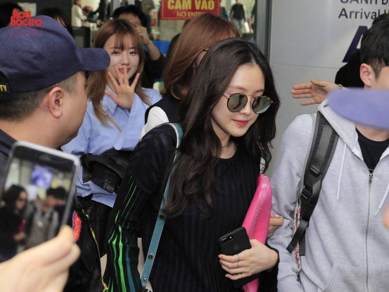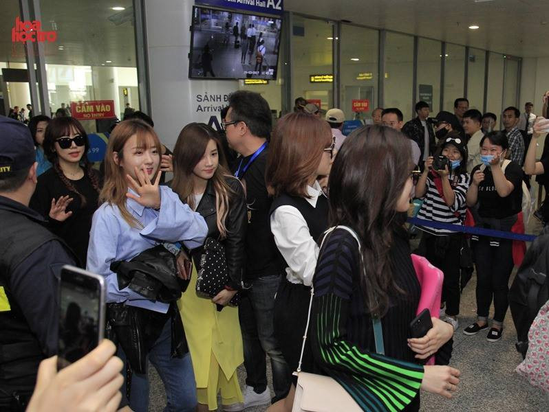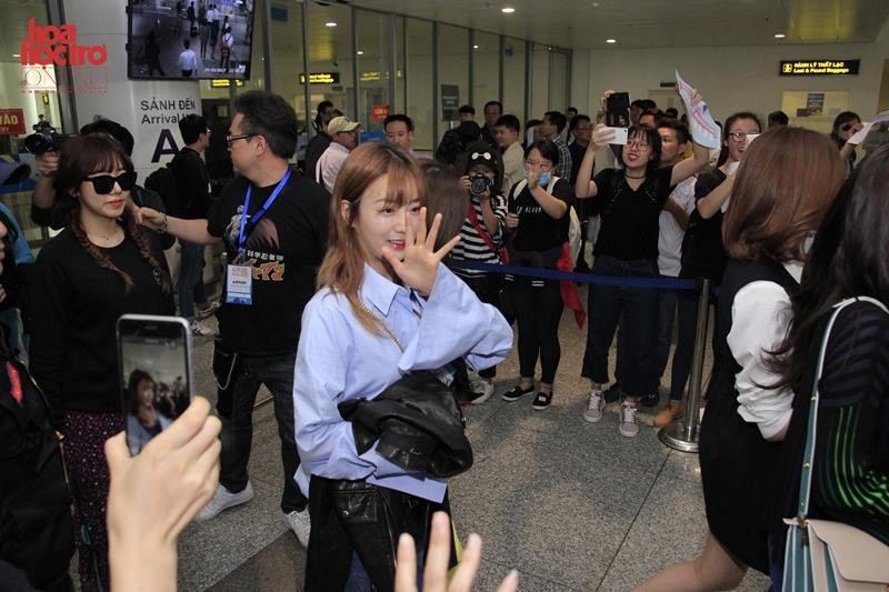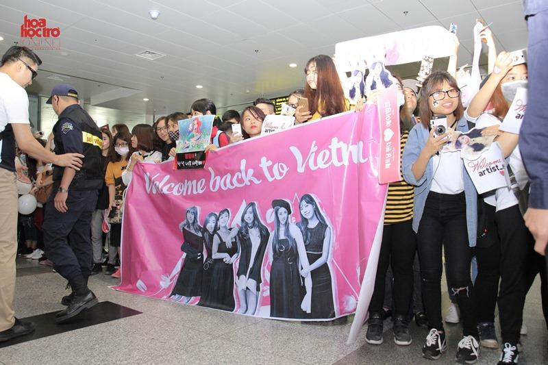 Tuy phải trải qua sự chênh lệch nhiệt độ giữa Việt Nam và Hàn Quốc nhưng Apink trông vẫn rất xinh đẹp. Các cô nàng còn vẫy tay chào fan nữa này.