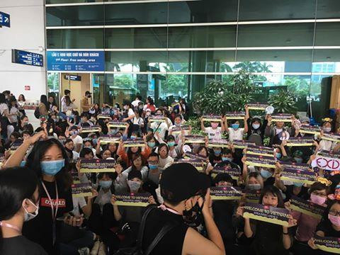 Đến chiều nay, chuyến bay chở nhóm đã hạ cánh xuống sân bay Tân Sơn Nhất. EXID rất thân thiện, cười và vẫy tay chào fan. Các cô nàng cũng rất vui khi được Leggo tặng quà là những chiếc nón lá xinh xinh, có hình vẽ siêu yêu của các thành viên trên đó và đội ngay tại trận luôn.