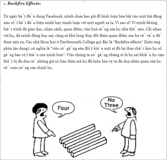 Ngoài ra tác giả bài viết còn dẫn chứng thêm Backfire Effects - Hiệu ứng phản tác dụng để làm rõ quan điểm của mình.
