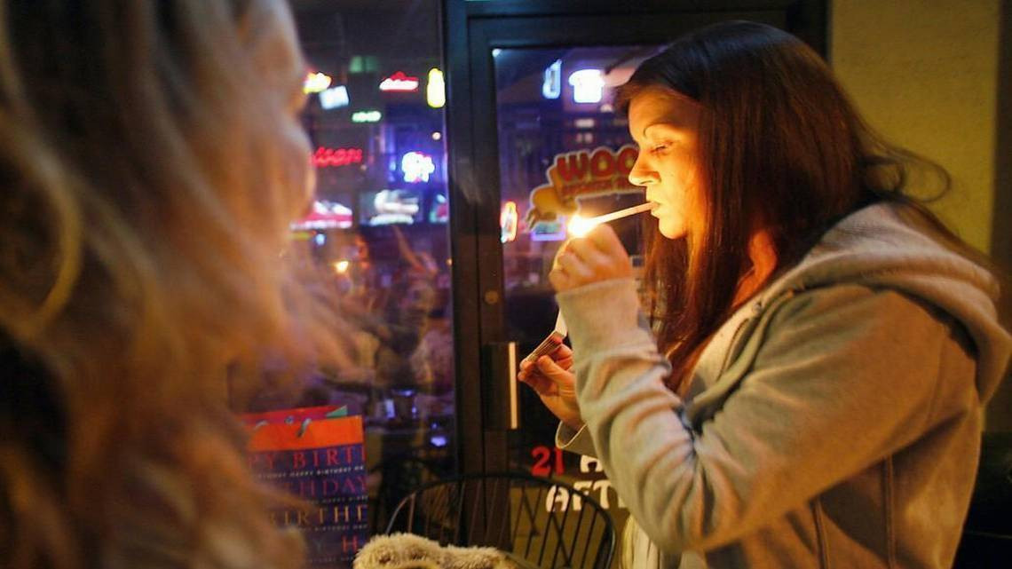 Hút thuốc bên ngoài một nhà hàng ở Cary, Bắc Carolina, Mỹ (Ảnh: newsobserver)