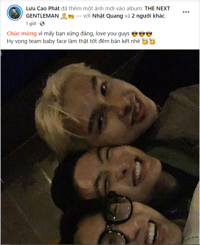 Để chúc mừng cho thành tích của những người đồng đội cũ, Lưu Cao Phát đã đăng tải hình ảnh thân thiết kèm lời nhắn: "Chúc mừng vì mấy bạn xứng đáng, love you guys. Hy vọng team baby face làm thật tốt đêm bán kết nhé".