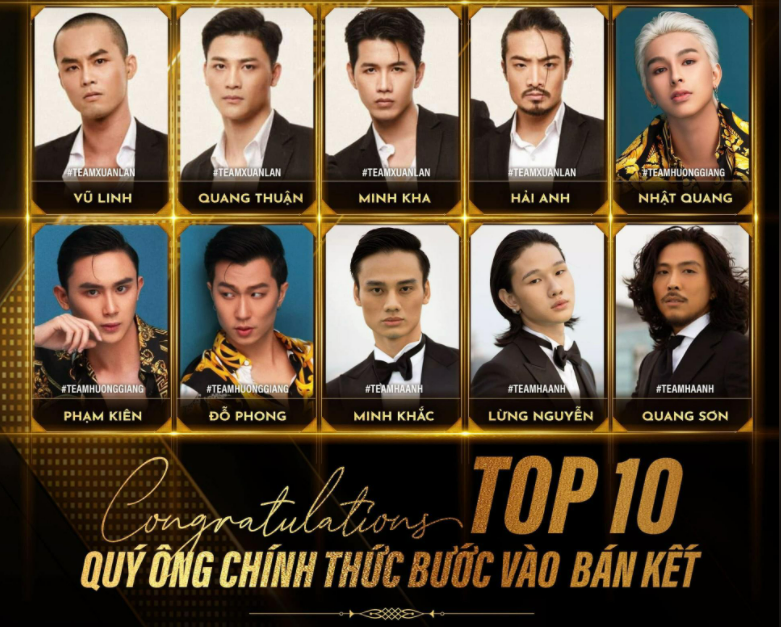 The Next Gentleman - Quý Ông Hoàn Mỹ tập 6 đã lên sóng và chọn ra Top 10 quý ông cuối cùng lọt vào vòng Bán kết. Top 10 vào bán kết gọi tên: Vũ Linh, Quang Thuận, Minh Kha, Hải Anh, Nhật Quang, Phạm Kiên, Đỗ Phong, Minh Khắc, Lừng Nguyễn và Quang Sơn. Trong đó, team Hương Giang có 3 chiến binh là Nhật Quang, Phạm Kiên và Đỗ Phong.