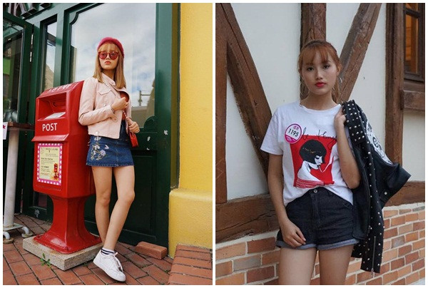 Các cô gái khoe vẻ trẻ trung trong trang phục đơn giản.