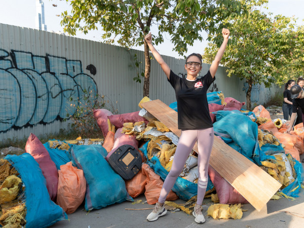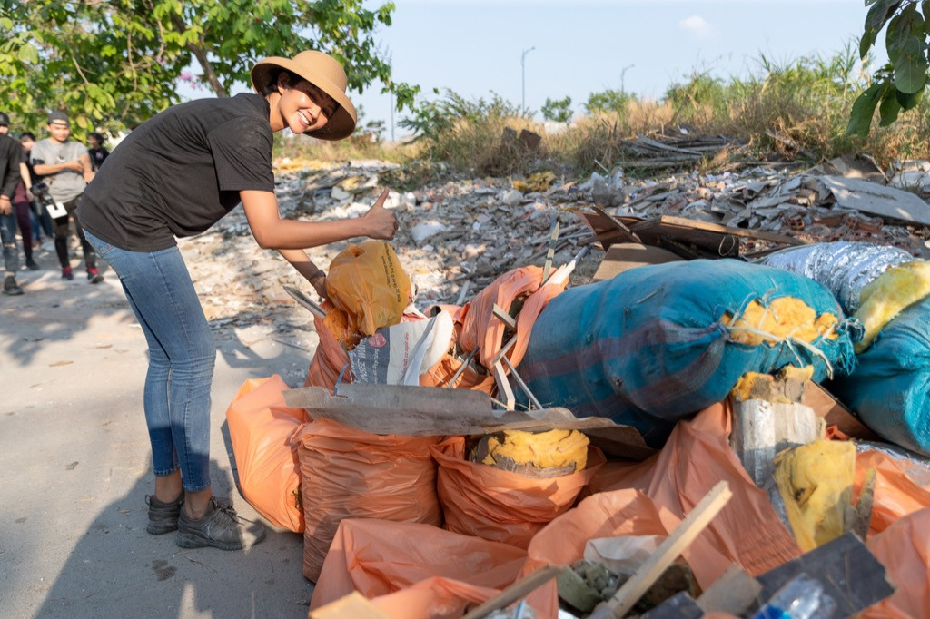 Theo đó, các người đẹp mỗi người một tay thu dọn rác, bao gồm rác thải sinh hoạt, vật liệu xây dựng bị bỏ đi, gom tất cả để đem đến nơi tiêu hủy.