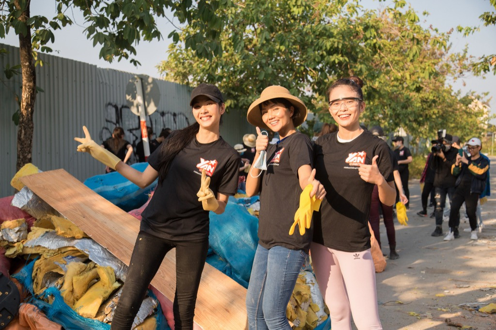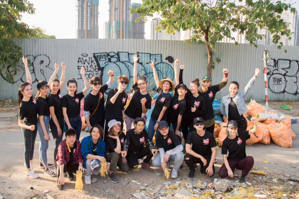 Top 3 Hoa hậu Hoàn vũ Việt Nam 2017 đã cùng các khách mời khác của chương trình như hoa hậu Tiểu Vy, Chúng Huyền Thanh, hoa hậu Lê Âu Ngân Anh… chung tay dọn rác khu vực dưới chân cầu Thủ Thiêm.