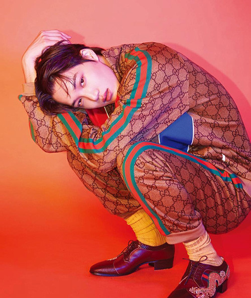 Dù mặc cả thiết kế gốc kén người nhưng Kai vẫn đẹp xuất sắc trên ảnh tạp chí. Mỹ nam sở hữu ánh mắt và nhiều biểu cảm độc, đầy tính nghệ thuật.