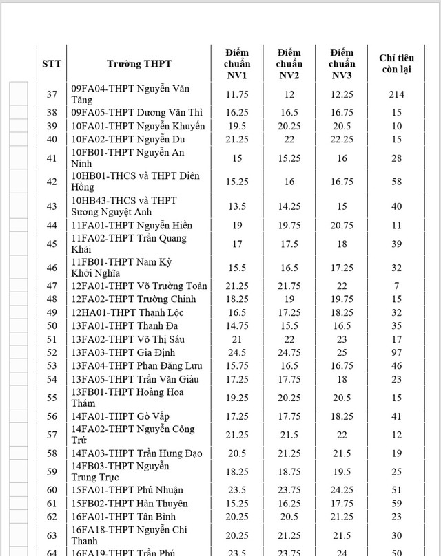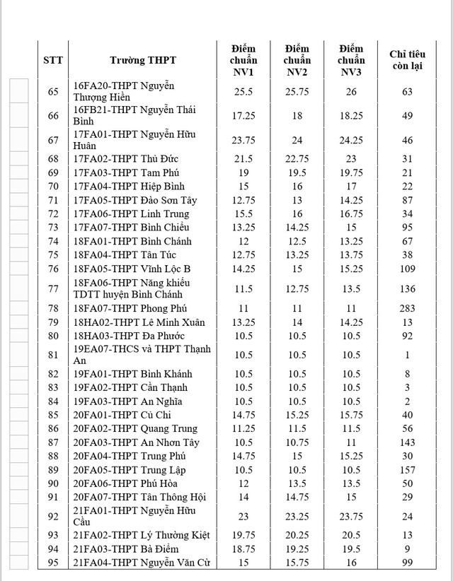 | Danh sách 108 trường THPT công lập tại TP.HCM có chỉ tiêu tuyển sinh bổ sung lớp 10. |