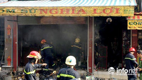Vụ cháy xảy ra vào sáng 1/6 tại cửa hàng bán đồ gốm số 88-90 đường Nguyễn Chí Thanh, phường 3, quận 10, TP.HCM. Cơ quan chức năng đang điều tra, làm rõ nguyên nhân dẫn đến vụ cháy.