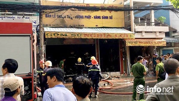 Theo đó, khoảng 7h30 sáng 1/6 nhiều người phát hiện khói nghi ngút bốc lên từ cửa hàng bán đồ gốm bị khoá trái cửa ở địa chỉ trên. Người dân hô hoán, lấy nước và bình chữa cháy dập lửa, tuy nhiên đám cháy bùng phát nhanh.