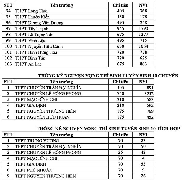 Thống kê nguyện vọng học sinh đăng ký tuyển sinh vào lớp 10 công lập năm 2018 như sau: