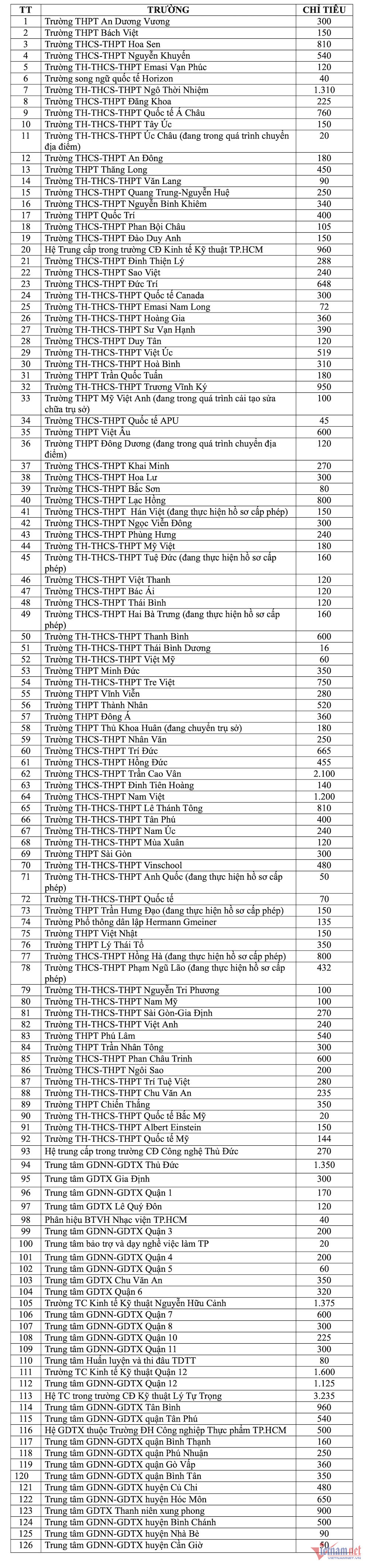 Năm nay, TP.HCM có khoảng 109.600 học sinh tốt nghiệp lớp 9. Thống kê của Sở GD-ĐT hơn 96.000 thí sinh đăng ký dự thi vào lớp 10. Trong khi chỉ tiêu tuyển sinh vào lớp 10 công lập và trường chuyên, lớp chuyên 77.300, nên có khoảng 18.700 học sinh không có suất ở lớp 10 công lập.