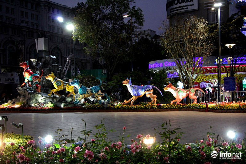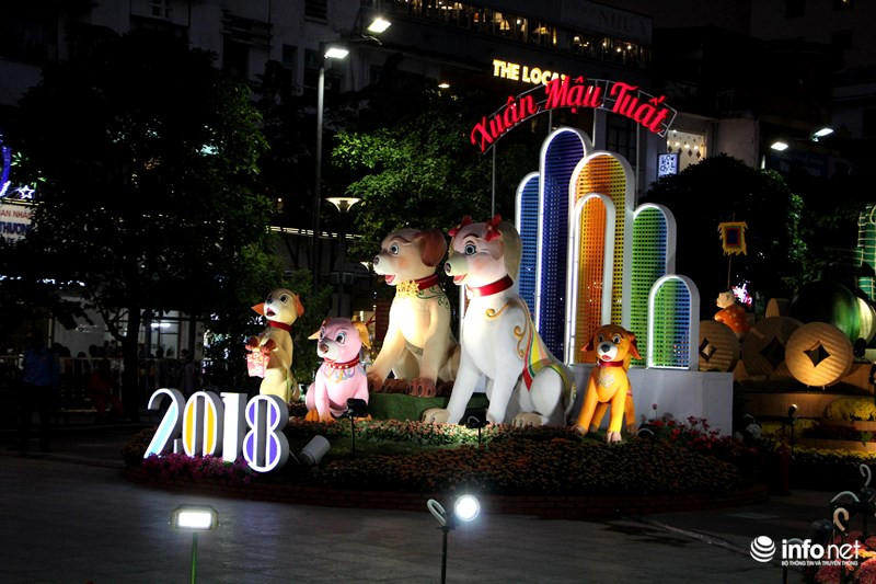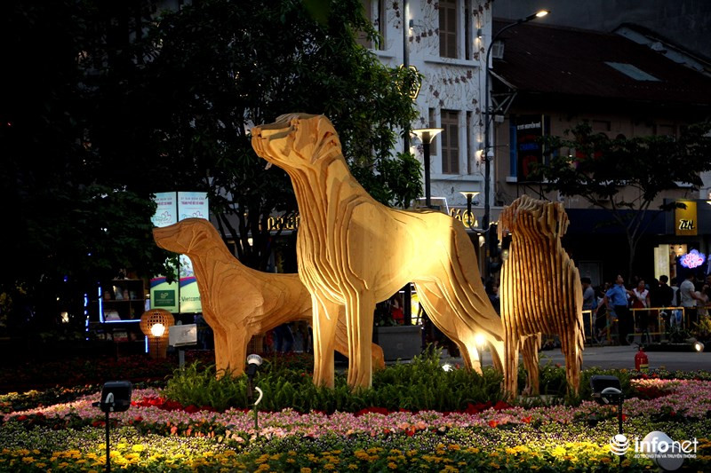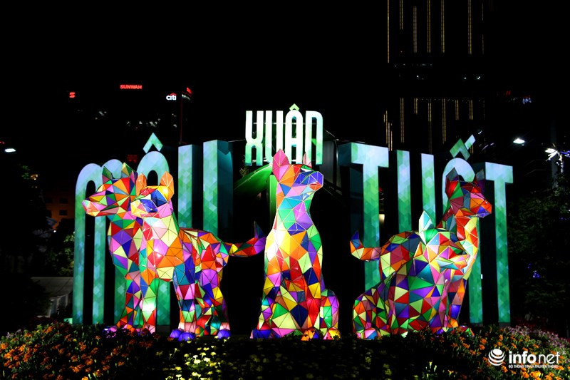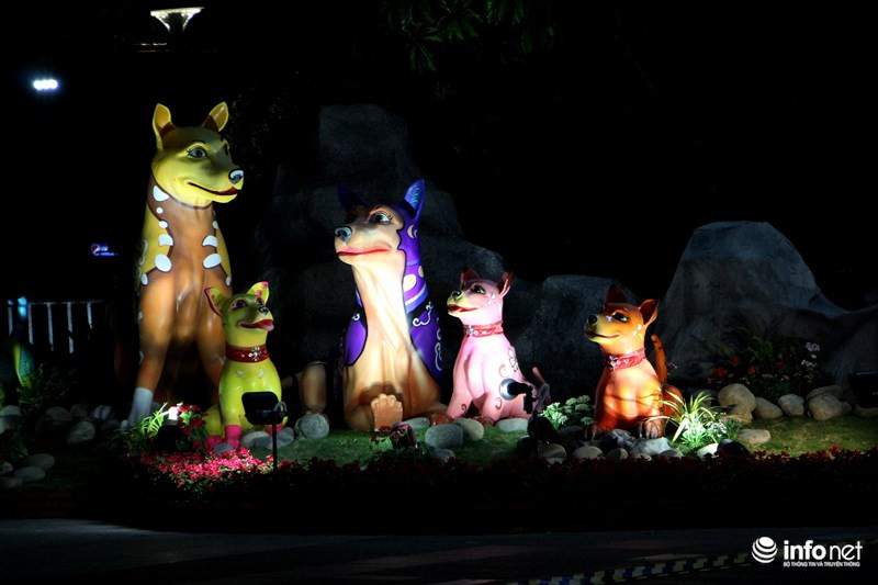 Trong khi đó những chú chó cuối đường hoa được hình thành bởi những hình khối, thể hiện sự phá cách, sáng tạo... như những kỳ vọng trong năm mới.