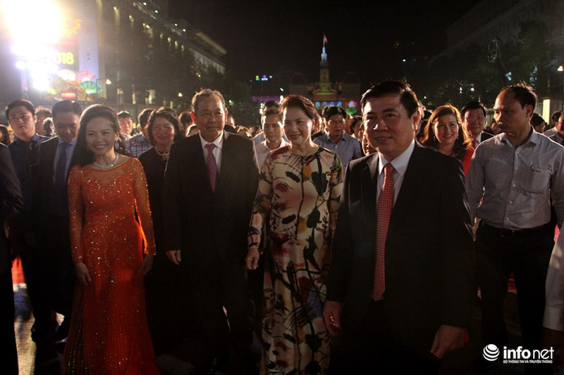 Tham dự lễ khai mạc đường hoa Nguyễn Huệ có Chủ tịch Quốc hội Nguyễn Thị Kim Ngân, Phó thủ tướng Trương Hòa Bình, Bí thư Thành ủy Nguyễn Thiện Nhân, nguyên Chủ tịch nước Trương Tấn Sang cùng nhiều lãnh đạo của thành phố.