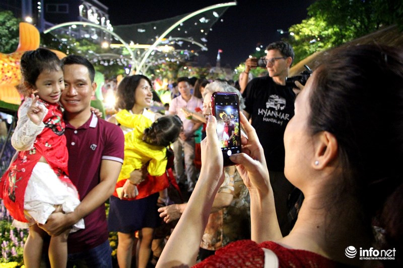 Người dân xép kín xung quanh các tiểu cảnh đẹp.