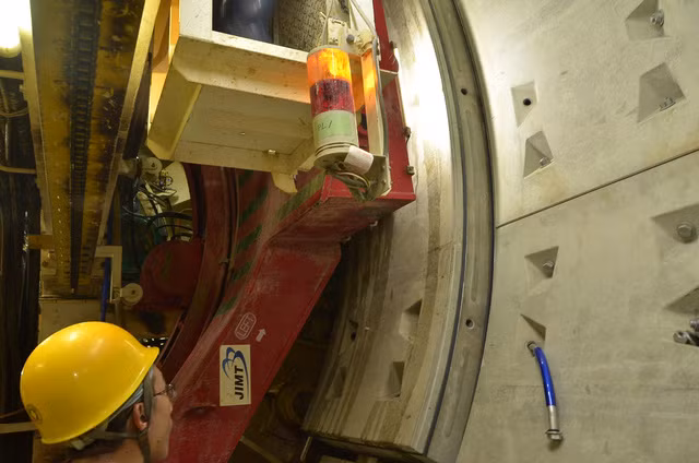Bản điện tử thể hiện máy đã đào được 247 vòng (một vòng dài 1,2 mét, tương đương gần 300 mét đường hầm).