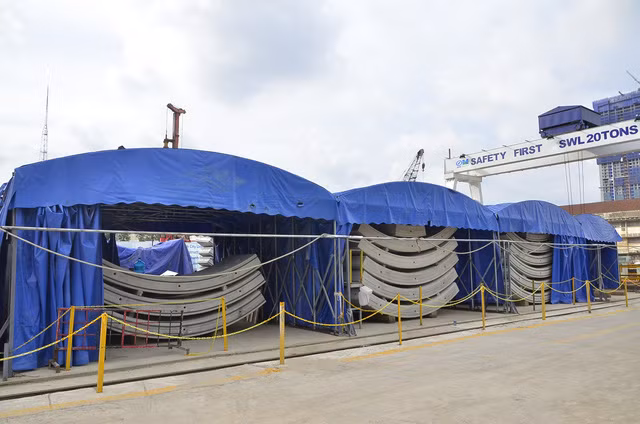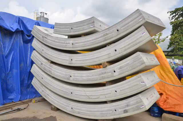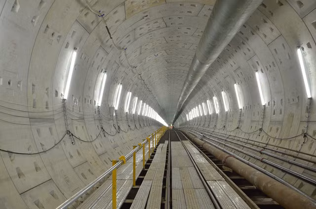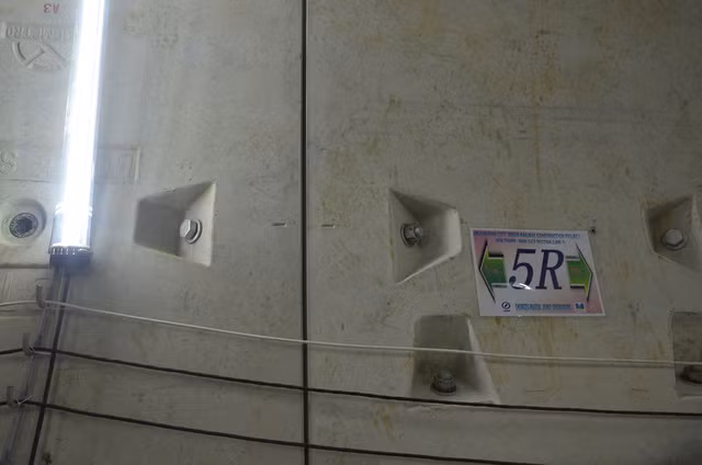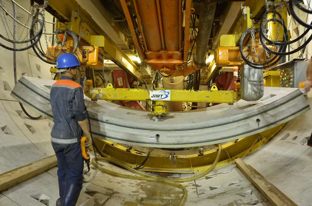 6 tấm bê tông hình vòng cung, mỗi tấm dài 1,2 mét, nặng khoảng 2,5 đến 3 tấn ốp vào vách hầm, tạo nên đường hầm metro.