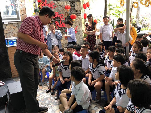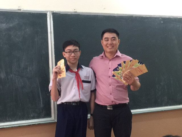 Thầy Hoàng Long Trọng mừng tuổi học sinh đến 200 bao lì xì.