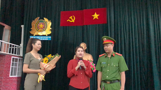 Trong buổi gặp, chị Nguyễn Thị Khánh Ly, cư dân Carina rất xúc động khi được gặp lại người lính cứu hỏa đã giải cứu gia đình chị trong giây phút sinh tử. Chị đại diện gia đình nói lời cảm ơn và tận tay trao bó hoa tươi thắm đến chiến sĩ trẻ.