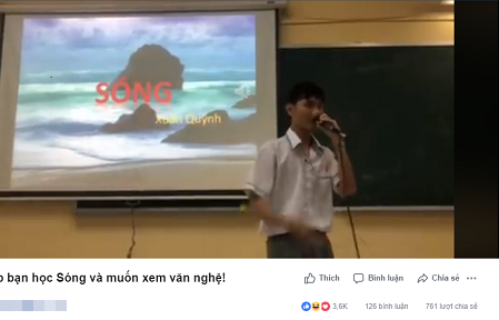 Mới đây, trong một nhóm đông thành viên trên mạng xã hội đã đăng tải bài viết của tài khoản có tên D.T.H chia sẻ clip ngắn quay lại hình ảnh nam sinh với phong thái rất tự tin đang trổ tài đọc rap bài thơ Sóng. Chỉ sau ít phút, bài đăng đã nhận được gần 2000 người thích và rất nhiều bình luận đòi xin thông tin về chàng trai kia.