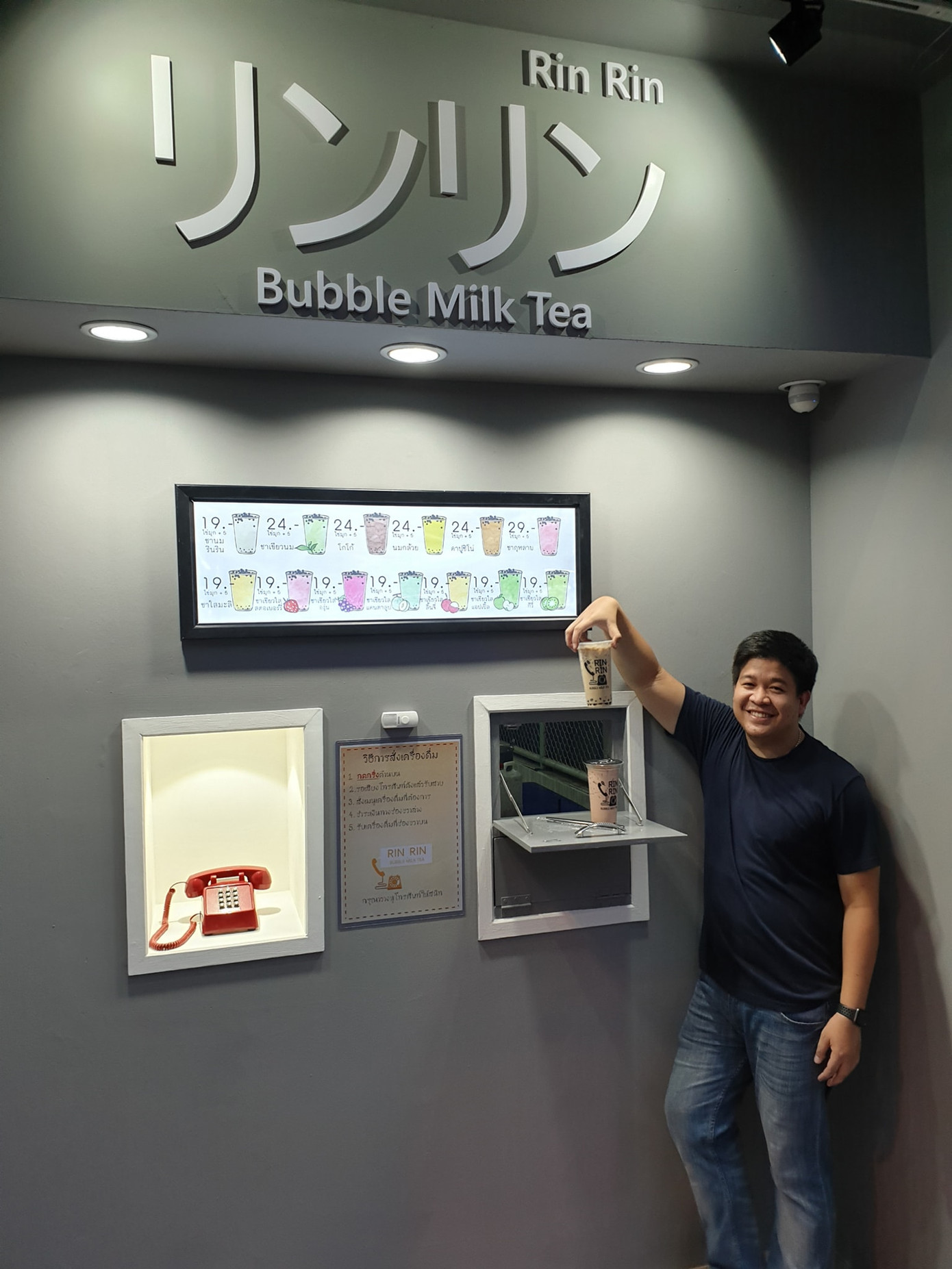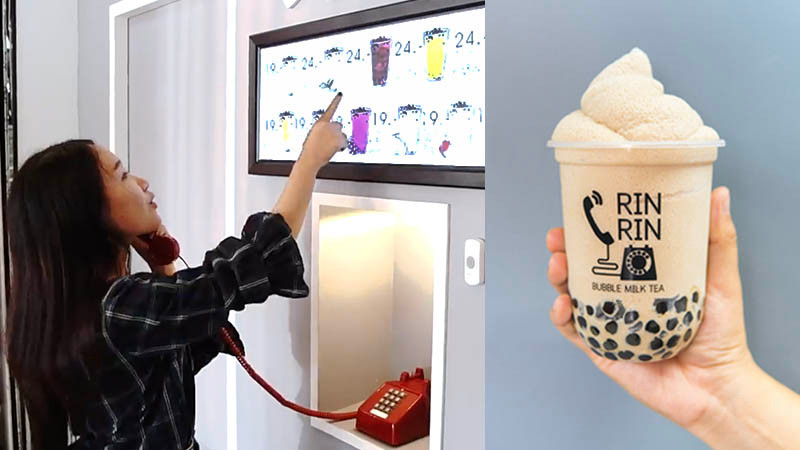 Bắt nguồn từ việc chán ý tưởng phục vụ thông thường ở các quán trà sữa, Pongwoladon Jinnupong – chủ chuỗi cửa hàng Rin Rin Bubble Milk Tea đã tạo ra một “quy trình” order trà sữa khá ngộ nghĩnh: Sẽ không có một nhân viên chờ bạn đứng chọn trà sữa nữa. Thay vào đó, thực khách sẽ tự thực hiện mọi công đoạn đặt hàng thông qua một chiếc buồng điện thoại bàn đặt ngay trong không gian quán.