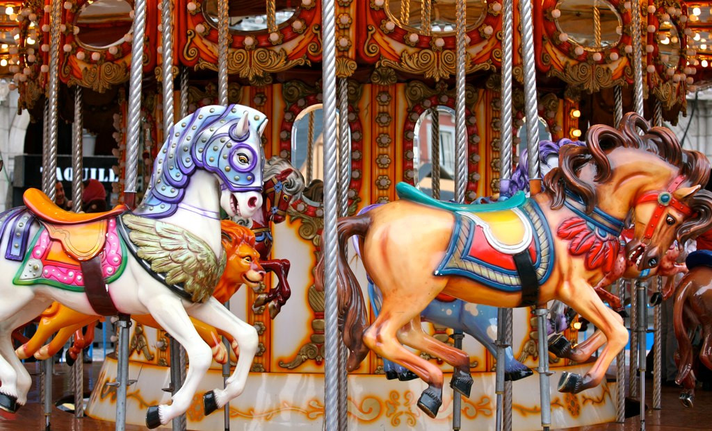 b. Vòng quay ngựa gỗ.