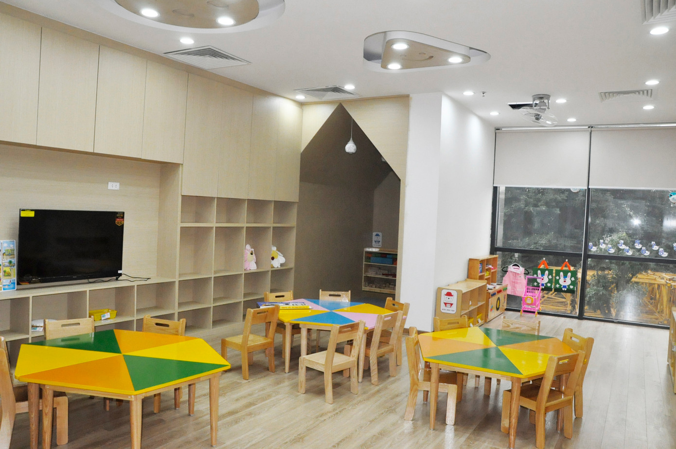 Tại Dongsim Kindergarten, phòng học được trang bị đầy đủ cơ sở vật chất phục vụ việc học tập