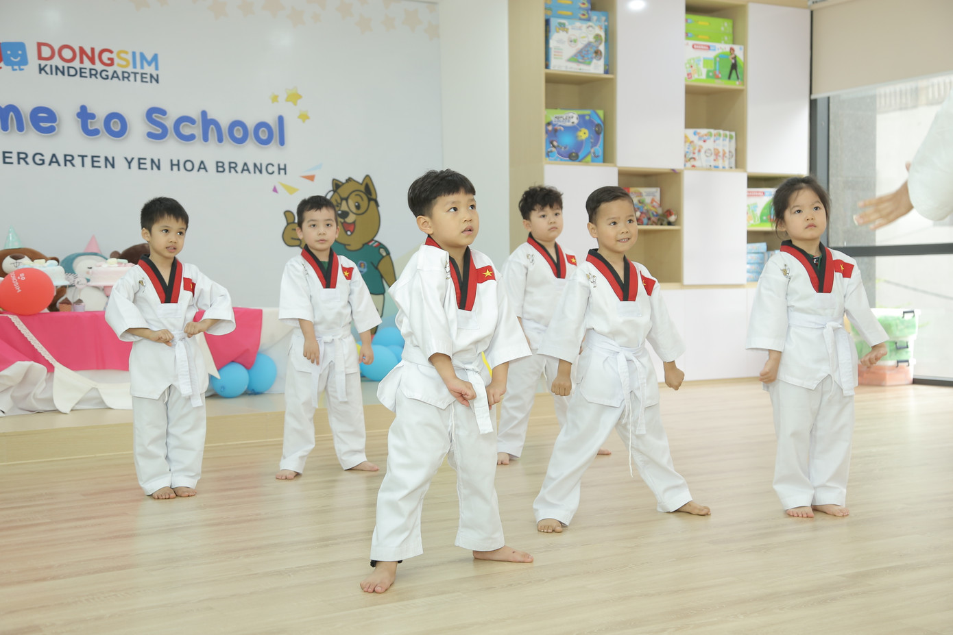Bên cạnh việc học kiến thức, các bạn nhỏ tại Trường mầm non Dongsim Kindergarten còn được trang bị kĩ năng võ Taekwondo