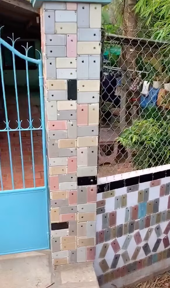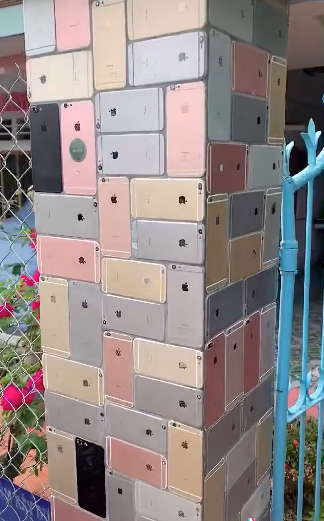 Tường rào ngôi nhà cũng được gia chủ “chơi lớn” ốp bằng iPhone. (Ảnh chụp màn hình)