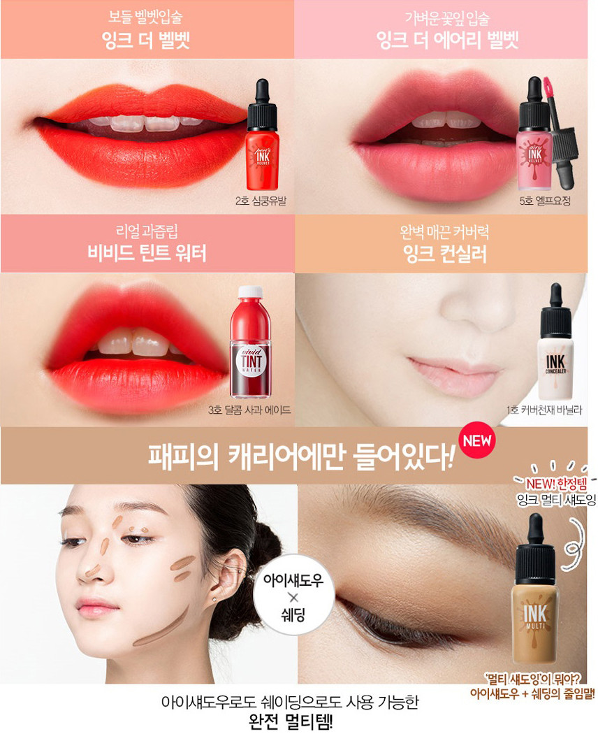 Thỏi son kem đầu tiên là Peripera Ink Airy màu số 05 - màu hồng san hô, kết cấu kem lì nhưng mịn và mềm môi, rất hợp với các bạn da ngăm. Thỏi tiếp theo là Peripera Ink Velvet màu số 02, đây cũng là một thỏi son kem lì nhưng chất son không hề thua kém dòng Airy. Màu 02 là cam pha chút đỏ nên hơi "chóe" chút. Cây son thứ ba trong vali là "chai nước" Peripera Vivid Tint Water màu 03 đỏ hồng, chất son tint cực khó tẩy trang nên các bạn chú ý đừng đánh son quá đậm.