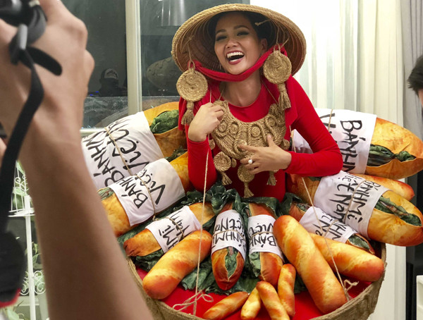 Khi diện bộ cánh này, H'Hen Niê sẽ mặc bộ áo dài màu đỏ, đội nón lá. Điểm nhấn là chiếc sạp đựng đầy bánh mì nhân thịt khổng lồ được biến tấu thành một chiếc váy. Những khẩu hiệu như "Bánh mì Việt Nam, ăn là nghiền" cũng nhằm giúp món ăn đường phố đặc trưng của người Việt được quảng bá nhiều hơn tới bạn bè thế giới.