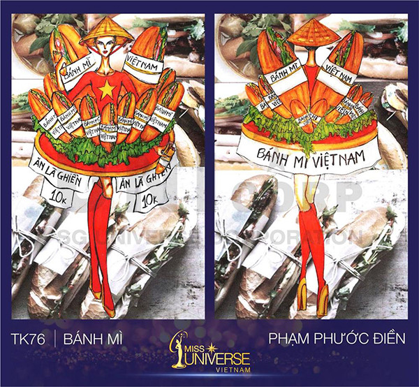 Sáu thiết kế sẽ được cân nhắc thành trang phục dân tộc của Việt Nam ở Miss Universe 2018: Hoa đăng sắc Việt, Bánh mì, Ngũ hổ, Thăng thu, Phố Cổ và Nữ Quyền.