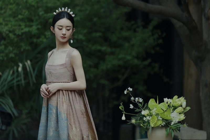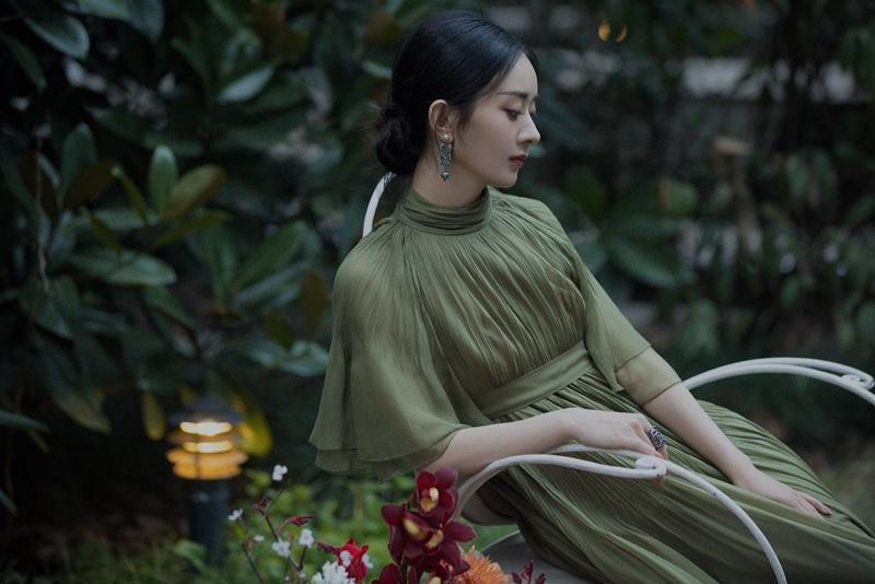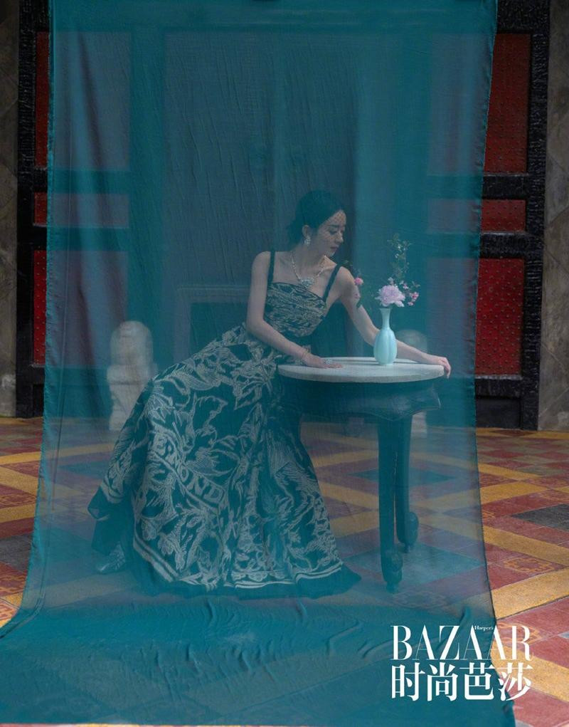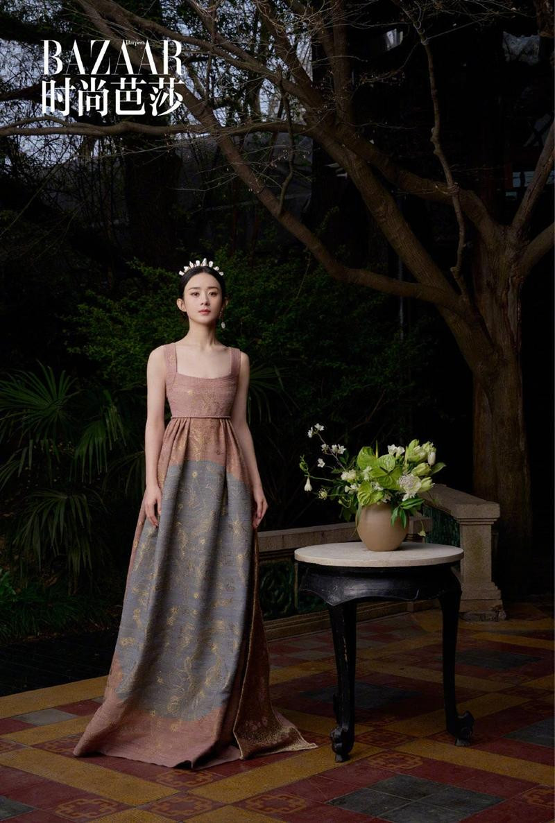Không giống như concept của Angela Baby là bám sát look book của Dior, loạt hình ảnh của Triệu Lệ Dĩnh mang đến cảm giác của một nữ thần huyền bí dạo chơi trong khu vườn địa đàng.