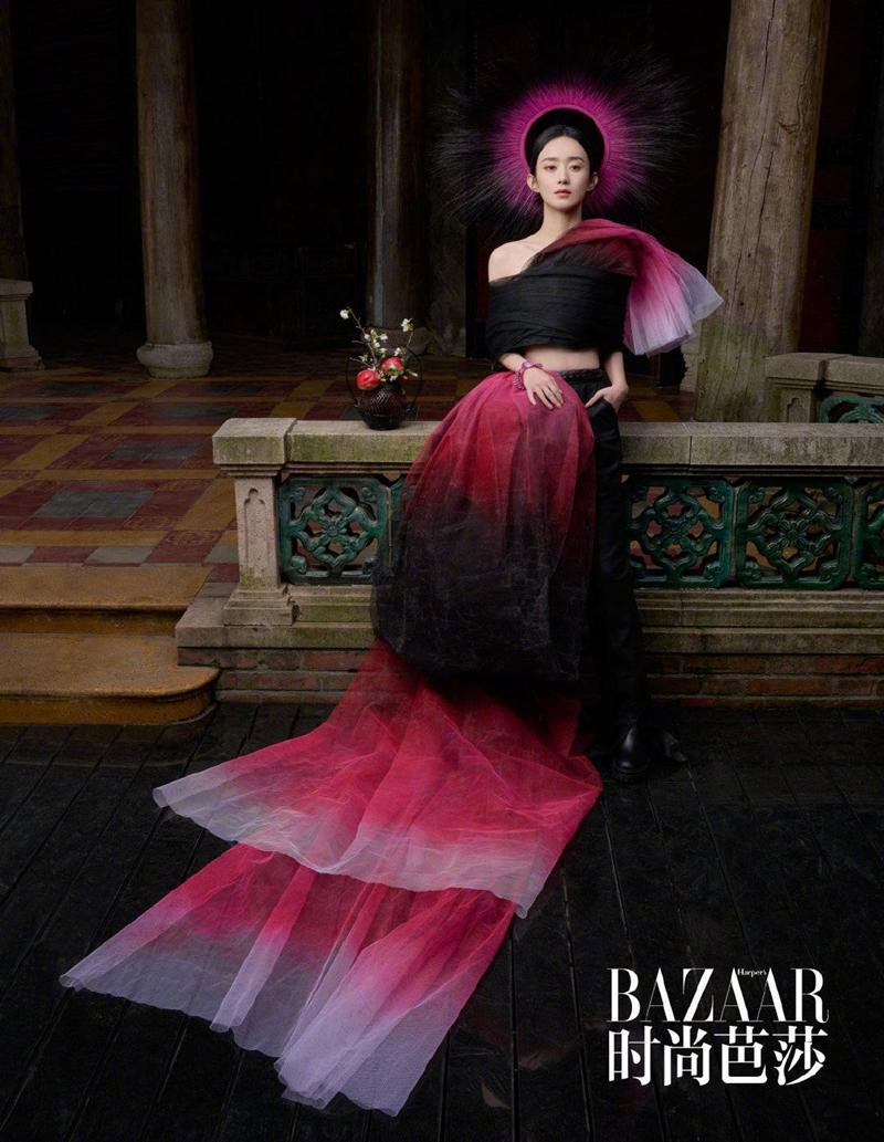 HHTO - Bộ ảnh của Triệu Lệ Dĩnh trên bìa của Harper’s BAZAAR Trung số tháng 5 nhận được “cơn mưa” lời khen. Cô được nhắc đến với những danh xưng “đẹp như nữ hoàng”, “đẹp tựa nữ thần”… trong trang phục dòng Haute Couture của Dior và một số thương hiệu khác.