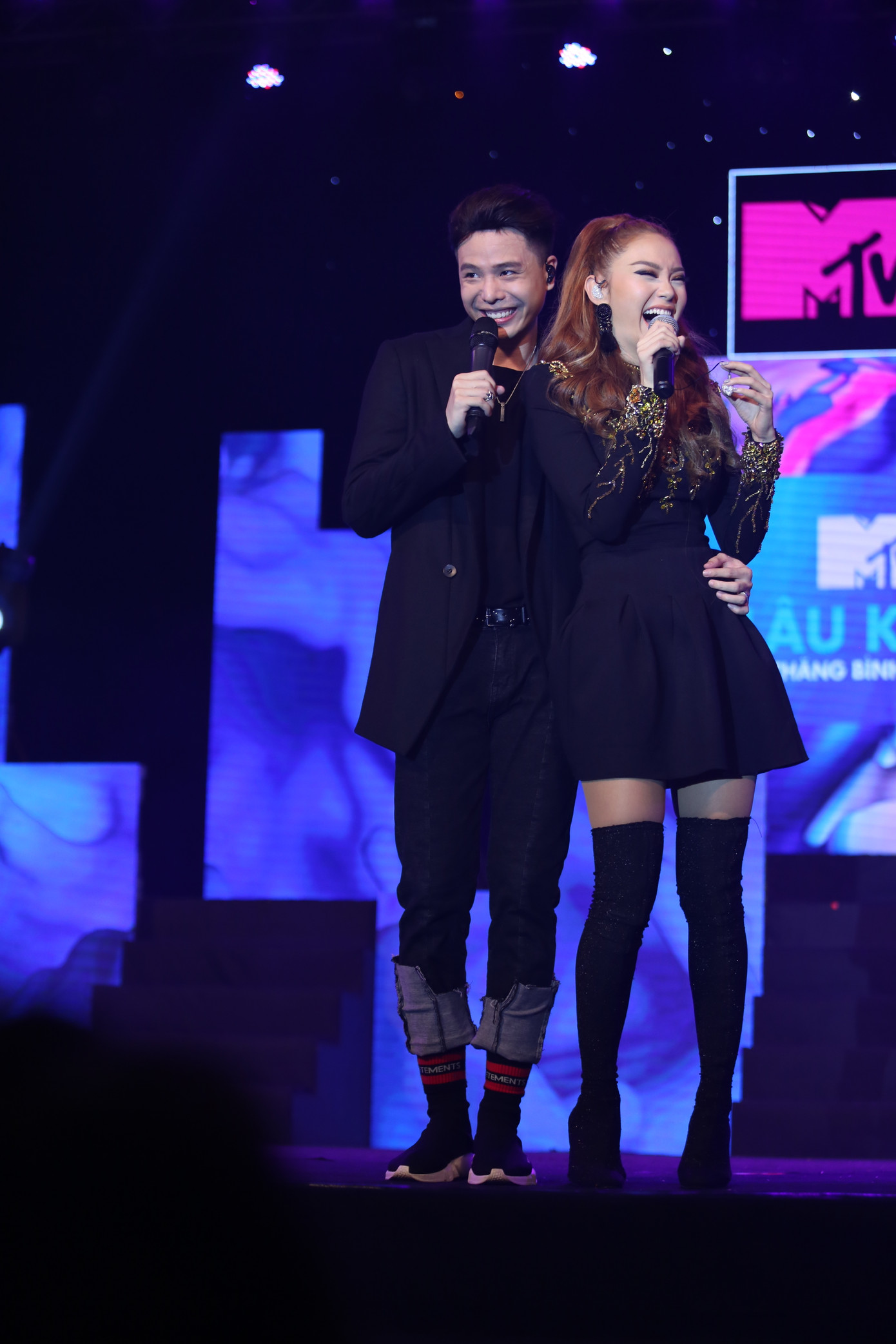 Cả hai còn khiến nhiều khán giả thích thú khi phối hợp “diễn sâu” cùng nhau trong ca khúc hit Một Vòng Trái Đất được phối lại hoàn toàn mới. Trong phần trình diễn, Trịnh Thăng Bình bất ngờ dành tặng nụ hôn cho Minh Hằng khiến các fan như vỡ oà.