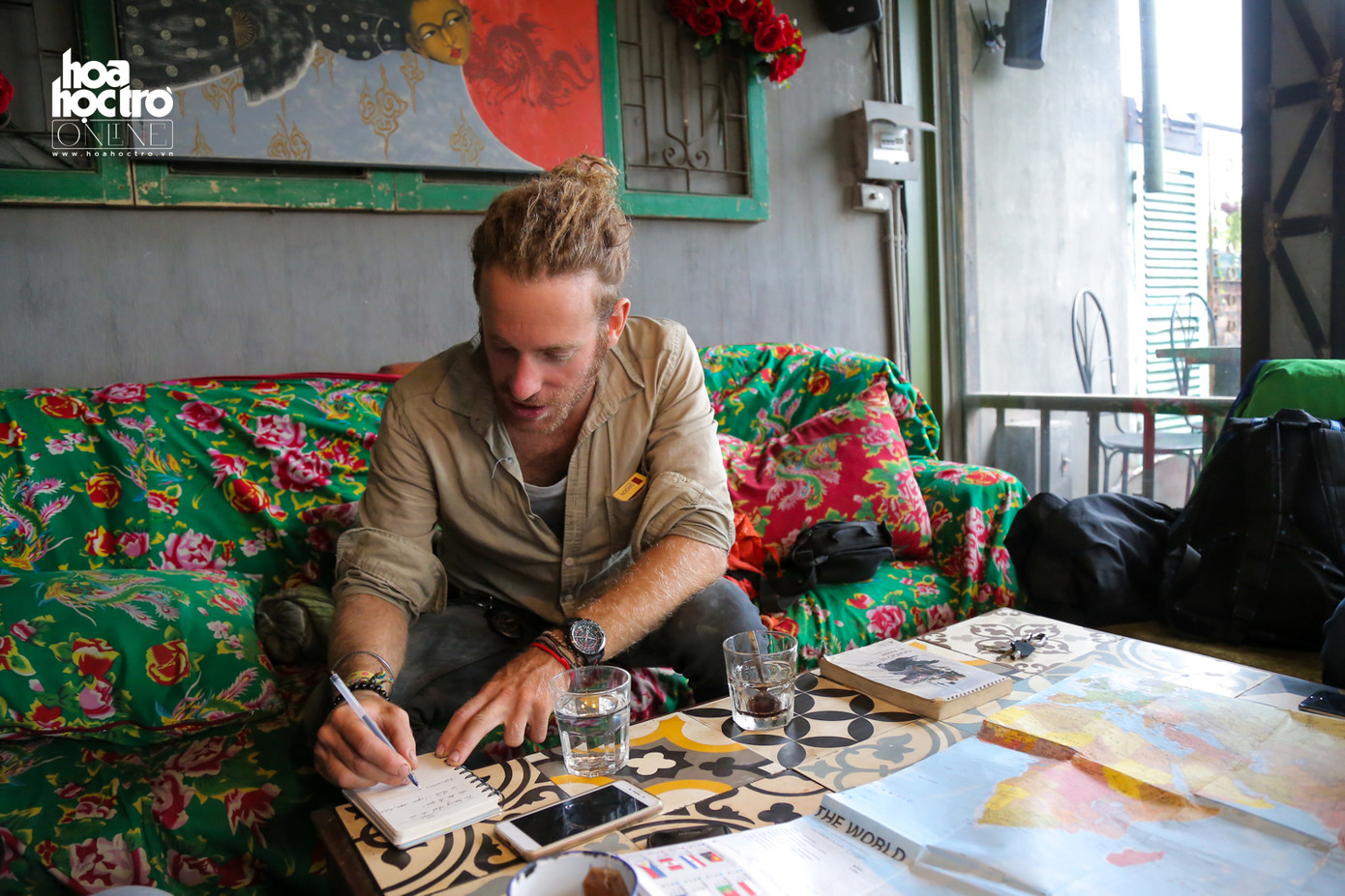 Hành trang của Pietro là tấm bản đồ thế giới cùng cuốn nhật ký ghi lại hành trình, một kho báu thực sự của anh chàng "phượt thủ Tây" này.