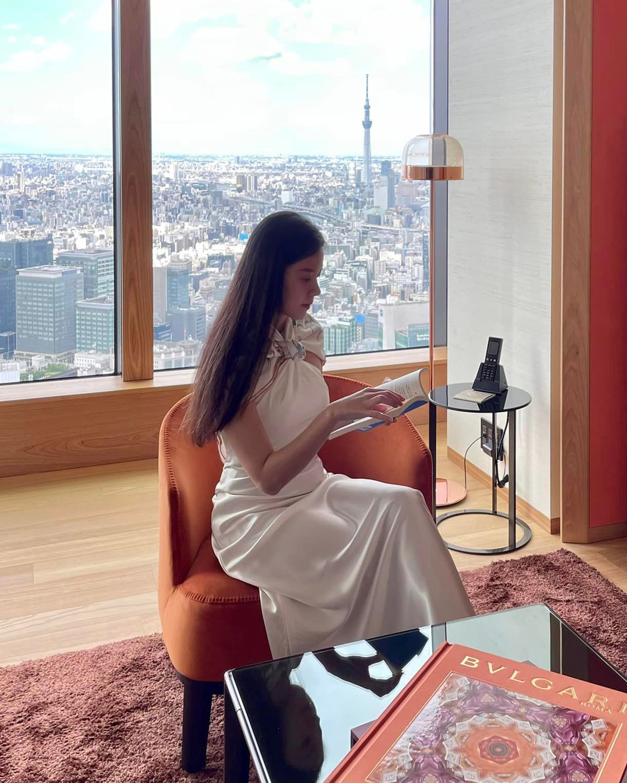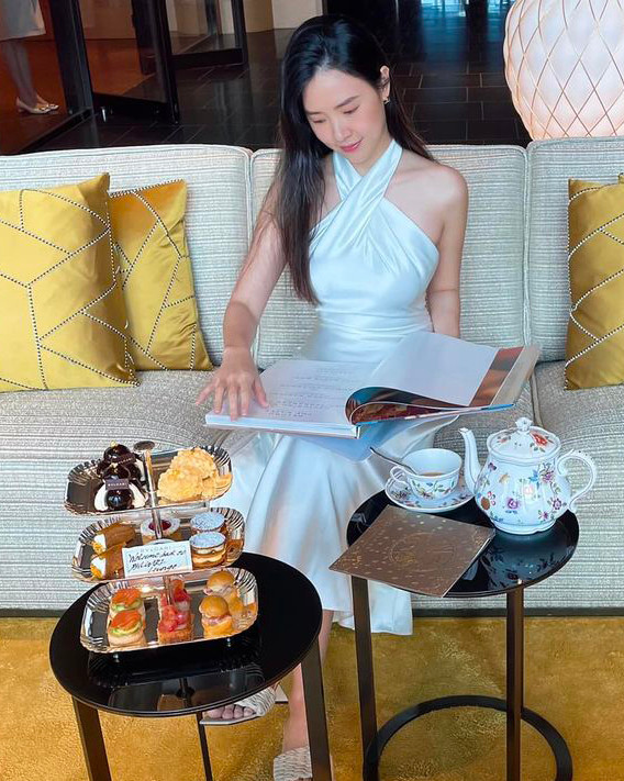 Mới đây, Midu khoe ảnh cùng chồng dùng bữa và uống trà chiều ở một nhà hàng. Nữ diễn viên mặc một chiếc đầm hai dây màu cam rực rỡ, khoe khéo bờ vai mảnh mai và than thở rằng ngày nào cũng được chồng tẩm bổ nên cô sắp lăn luôn rồi.