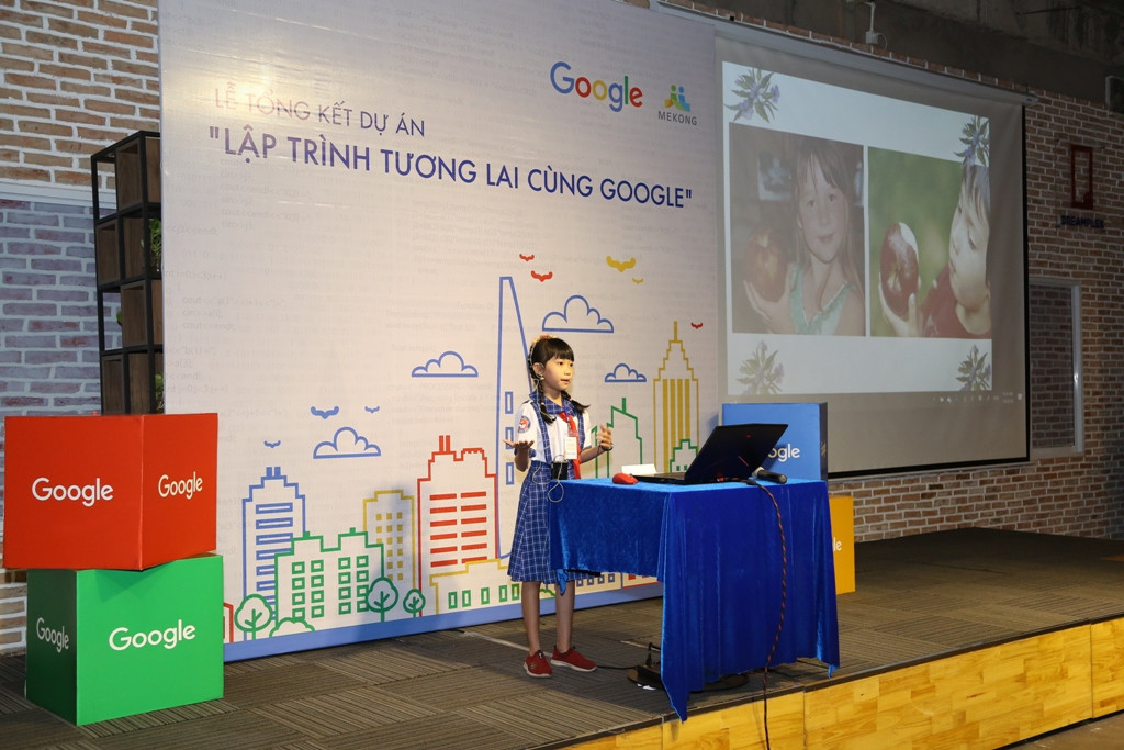 Lập trình Tương lai cùng Google là dự án giáo dục giúp truyền đi đam mê khoa học máy tính cho trẻ em. 100% các em hoàn thành khoá học đều có thể tạo ra sản phẩm lập trình riêng của mình bằng ngôn ngữ Scratch, lấy chủ đề là các bài học về An toàn giao thông, Trò chơi làm Toán, Ôn luyện tiếng Anh, luyện Chính tả, Học Địa lý.