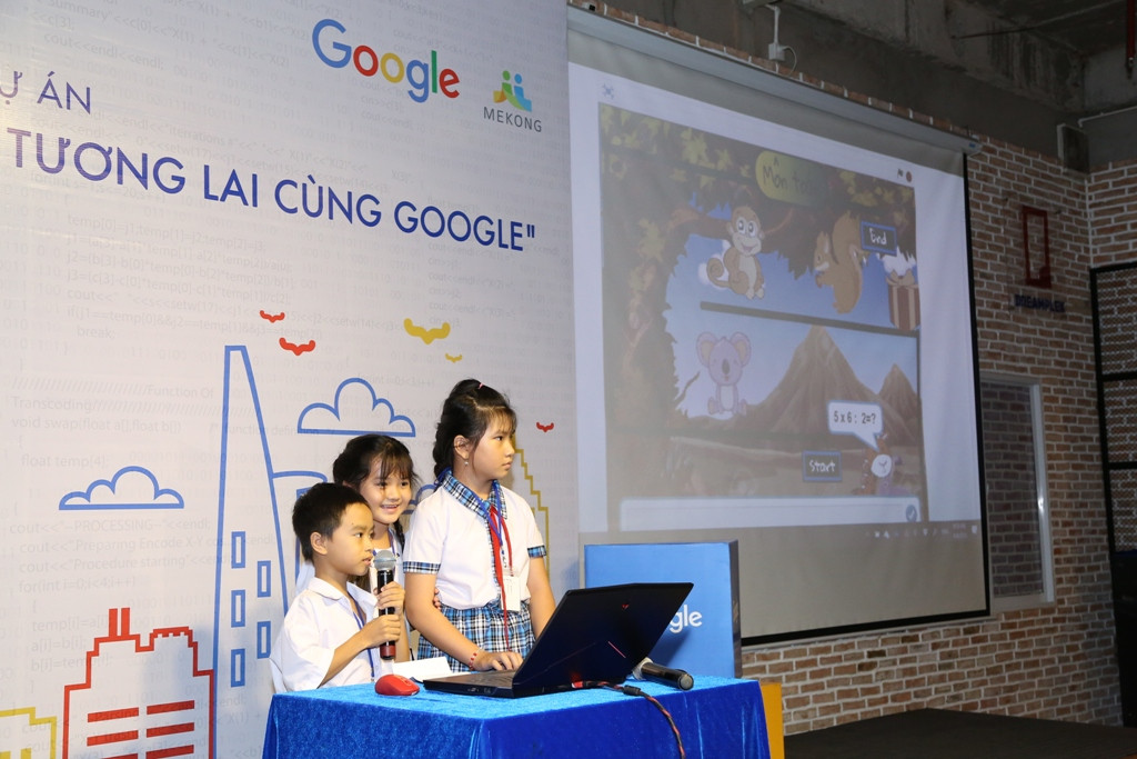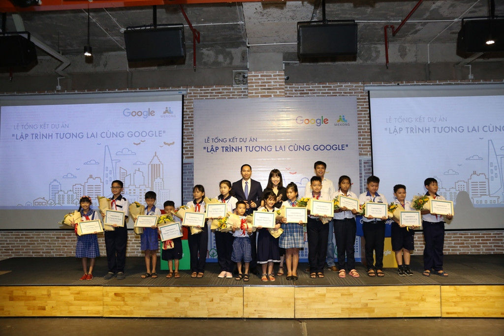 Kết quả của Sân chơi Lập Trình Tương Lai Cùng Google, 14 em học sinh đến từ các trường tiểu học tại Tiền Giang, Vĩnh Long, Thành Phố Hồ Chí Minh, Củ Chi với 10 sản phẩm nổi bật, xuất sắc nhất đã nhận được giải thưởng đặc biệt - một chuyến tham quan trụ sở Google Châu Á Thái Bình Dương tại Singapore.