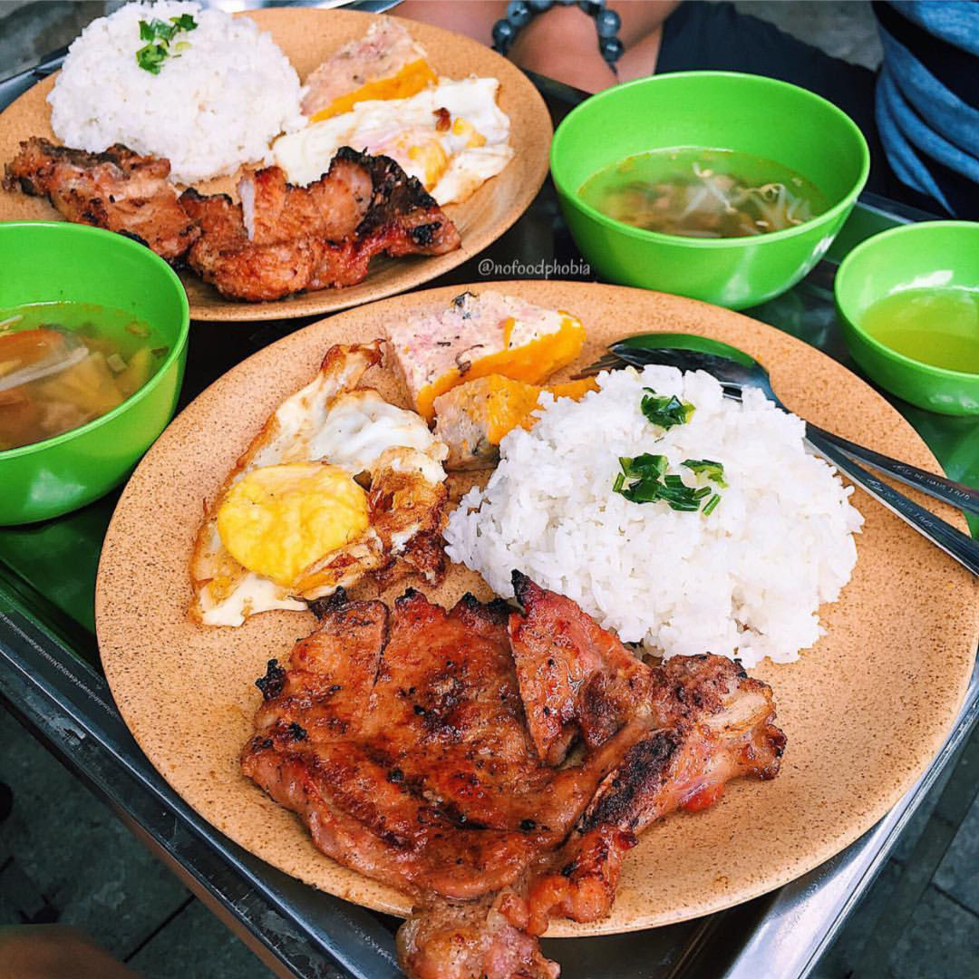 Thực đơn cơm tấm ở đây khá đa dạng, có đầy đủ cơm, sườn nướng, gà nướng, chả trứng, bì chay, trứng chiên đúng kiểu Sài Gòn để bạn tha hồ lựa chọn theo sở thích, ăn kèm canh chua và nước mắm. Miếng sườn siêu to ướp theo khẩu vị miền Nam nên hơi ngọt một chút, cực kỳ đậm đà được nướng xém cháy thơm lừng và mềm đến mức thoải mái dùng thìa xắn dễ dàng, một món không thể bỏ qua của #teammêthịt. Hoặc muốn thử món mới lạ hơn thì hãy mạnh dạn order ngay cơm đùi gà nướng để cắn ngập răng miếng đùi gà mọng vị thịt ngon lành.