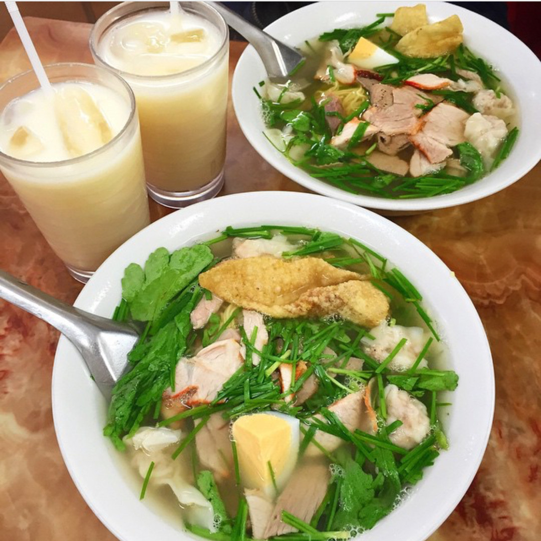 Mỳ vằn thắn thêm một cốc sữa đậu nành là đúng chuẩn combo bữa trưa ngon miệng rồi! (Ảnh: IG @houghuong_)