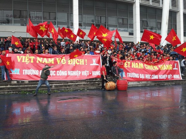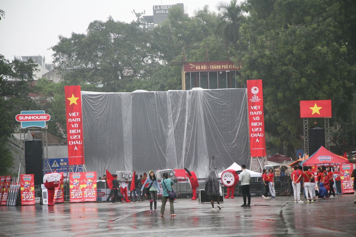Dù ngoài trời mưa lạnh nhưng không cản được bước chân của mọi người. Tất cả mọi trái tim người hâm mộ đều chờ đợi khoảnh khắc diễn ra trận đấu, để cổ vũ hết mình cho các cầu thủ đội tuyển U23 Việt Nam.