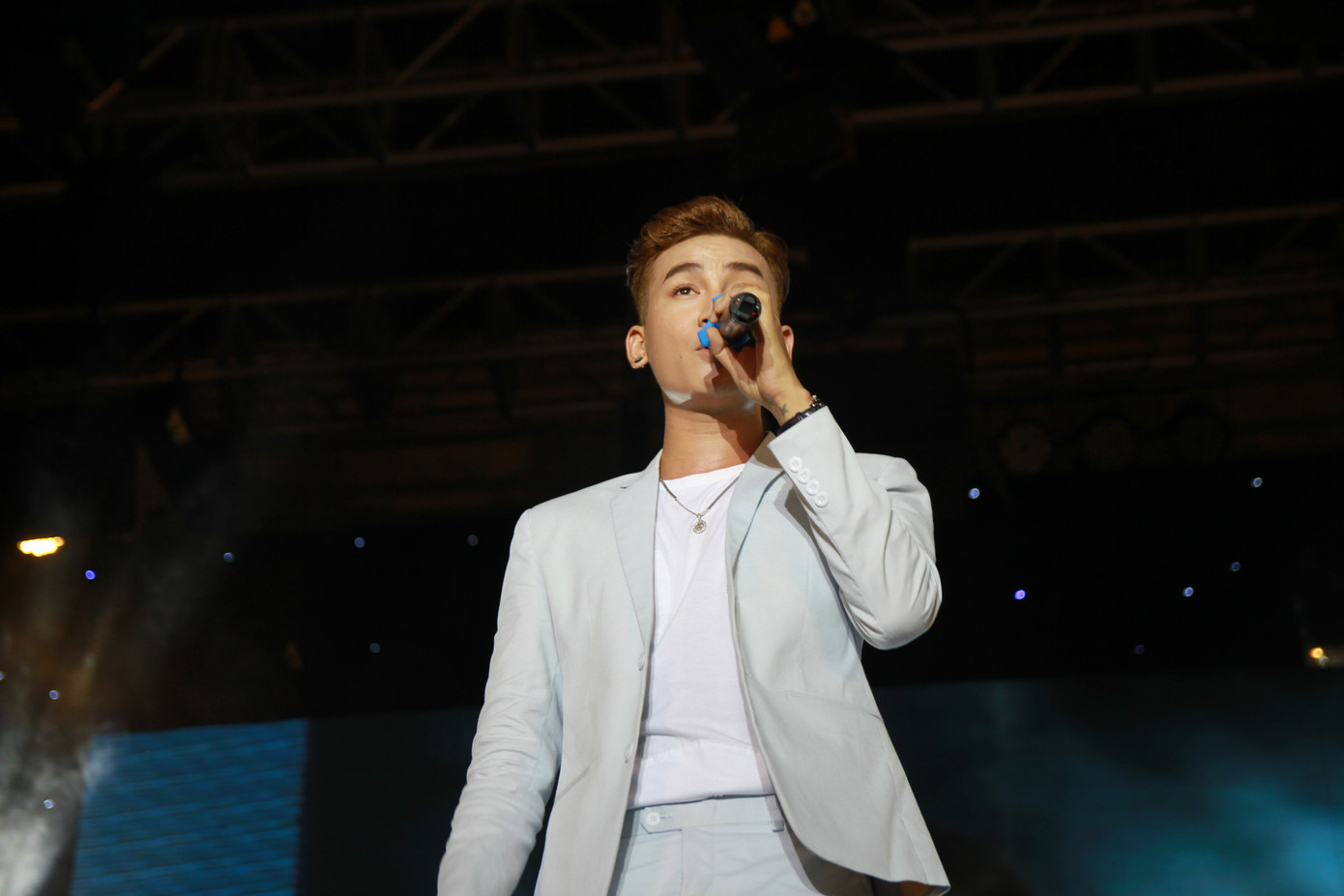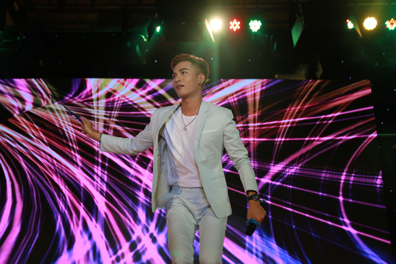 Quán quân Giọng hát Việt mang đến 3 ca khúc trong đó 2 bản hit gắn với tên tuổi của anh là Chuyện hôm qua đó và Theo anh kèm những động tác vũ đạo ấn tượng.