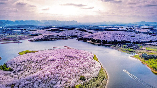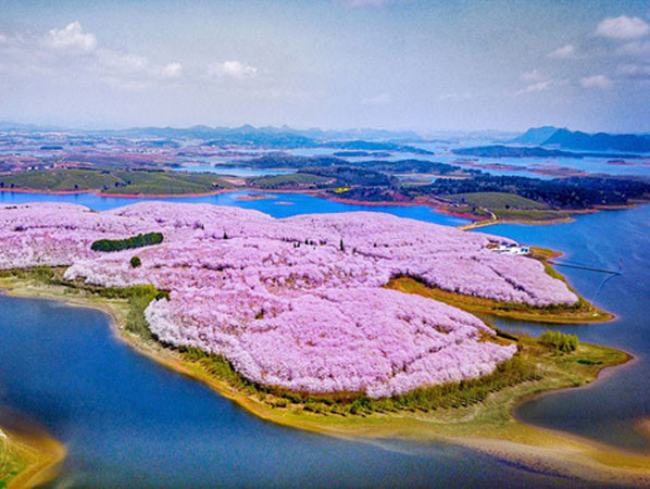 Hoa anh đào vốn nổi tiếng ở xứ sở phù tang Nhật Bản, nhưng loài hoa này cũng xuất hiện ở nhiều nơi trên thế giới tại các nước xứ lạnh. Trung Quốc cũng là một trong những nước nổi tiếng với mùa hoa anh đào rực rỡ và thu hút khách. Dù đã bước vào giai đoạn cuối mùa, nhưng những thảm hoa anh đào đua nhau bừng nở khắp hòn đảo nhân tạo ở thành phố Quý Dương, tỉnh Quý Châu, khiến du khách không thể “kiềm lòng”.