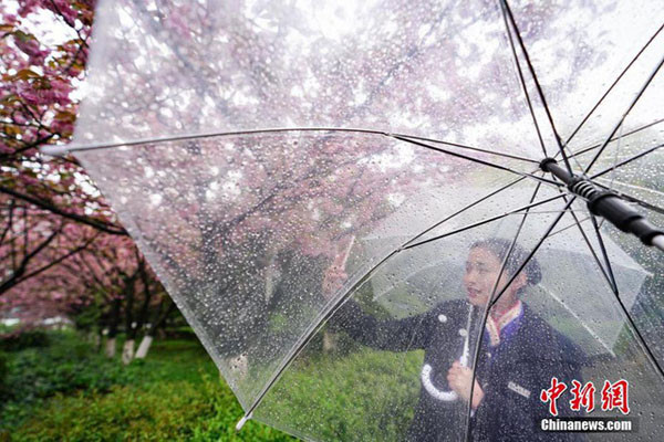 Hoa anh đào dưới những cơn mưa xuân cuối mùa.