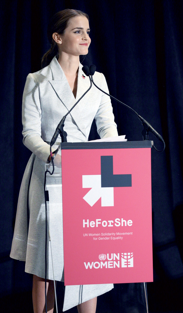 Emma Watson từng là đại sứ thiện chí của Cơ quan Phụ Nữ Liên Hiệp Quốc nhờ hình ảnh mạnh mẽ, tài giỏi, luôn đấu tranh cho nữ quyền. Trong cuộc họp của Đại hội đồng Liên Hiệp Quốc lần thứ 71 tại New York, Emma Watson đã có bài phát biểu cực kỳ ý nghĩa về bình đẳng giới cũng như an toàn trong trường học.