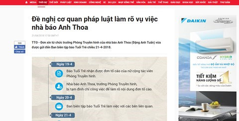 Trước đó, Ban biên tập báo Tuổi Trẻ đã yêu cầu các bên liên quan tường trình và cung cấp chứng cứ đầy đủ, khách quan để có cơ sở giải quyết vụ việc.