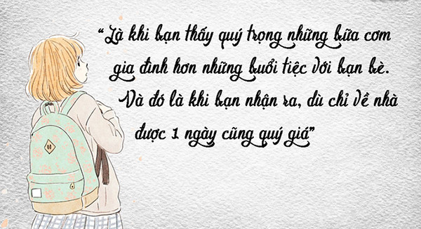 Ngày trước bạn tìm đủ mọi lý do để xin bố mẹ cho đi chơi với bạn bè, nhưng giờ đây chẳng có gì quý giá hơn một bữa cơm quây quần cả gia đình. Chúng thực sự ấm áp và quý giá.